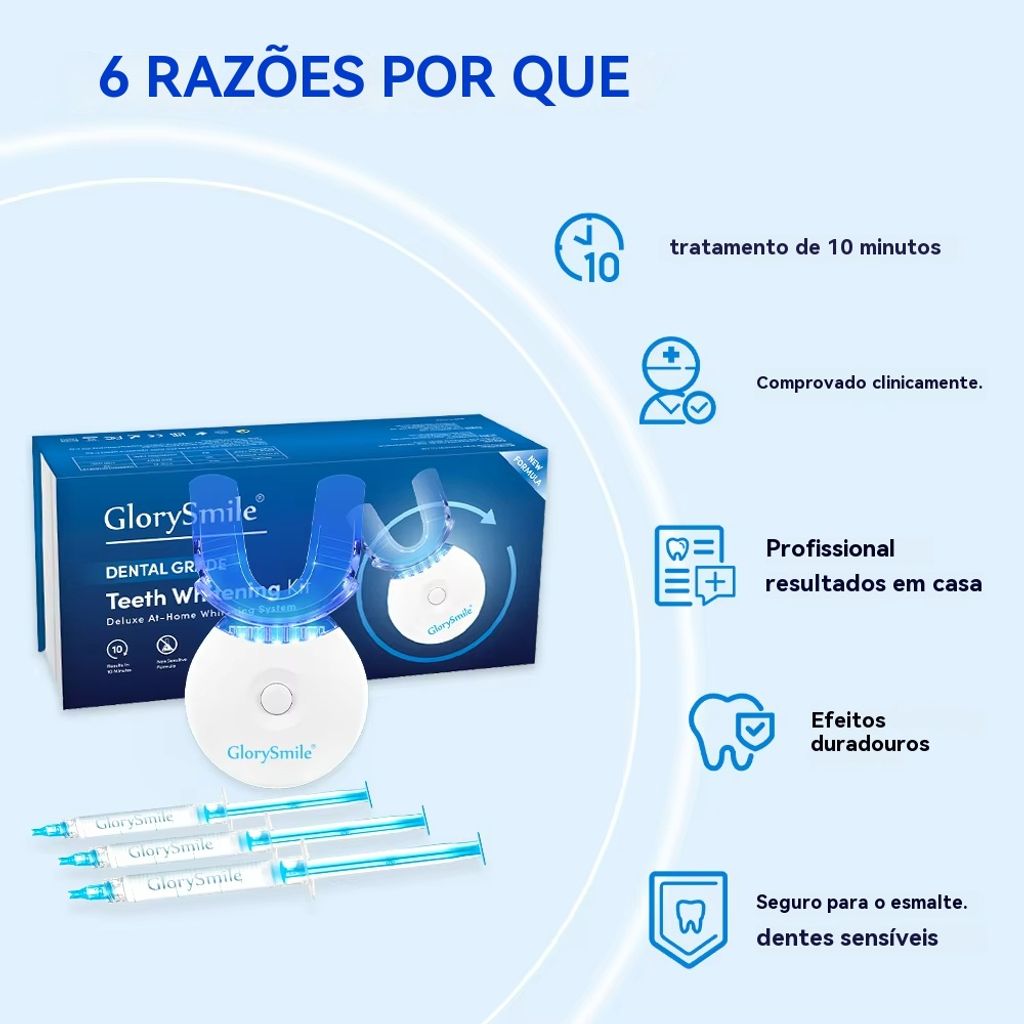 GlorySmile Kit de Clareamento Dental Nível Odontológico para Uso em Casa – Clareamento Rápido e Remoção de Manchas Amarelas dos Dentes