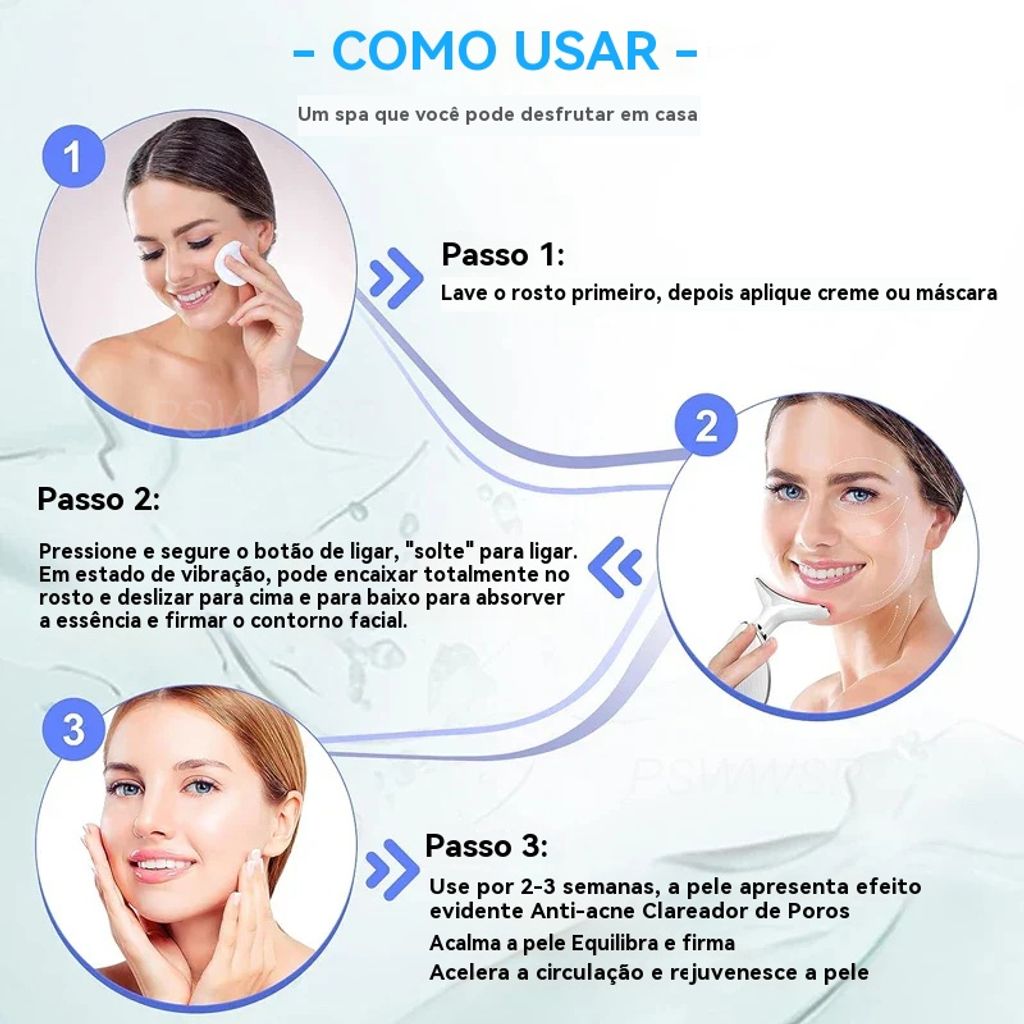 ✅ Tecnologia de Microvibração – Aumenta a produção de colágeno e diminui os sinais de velhice.
