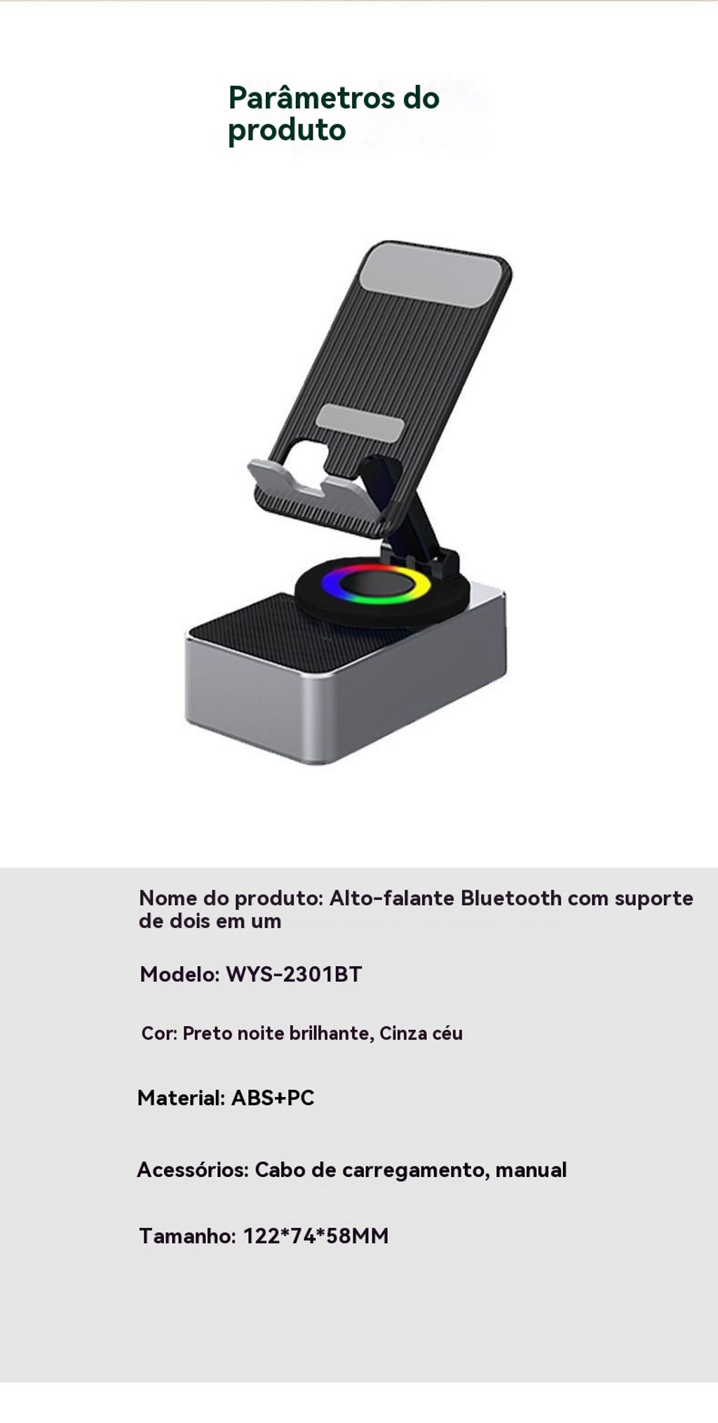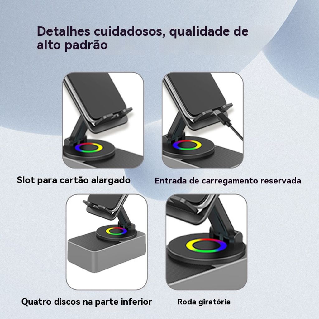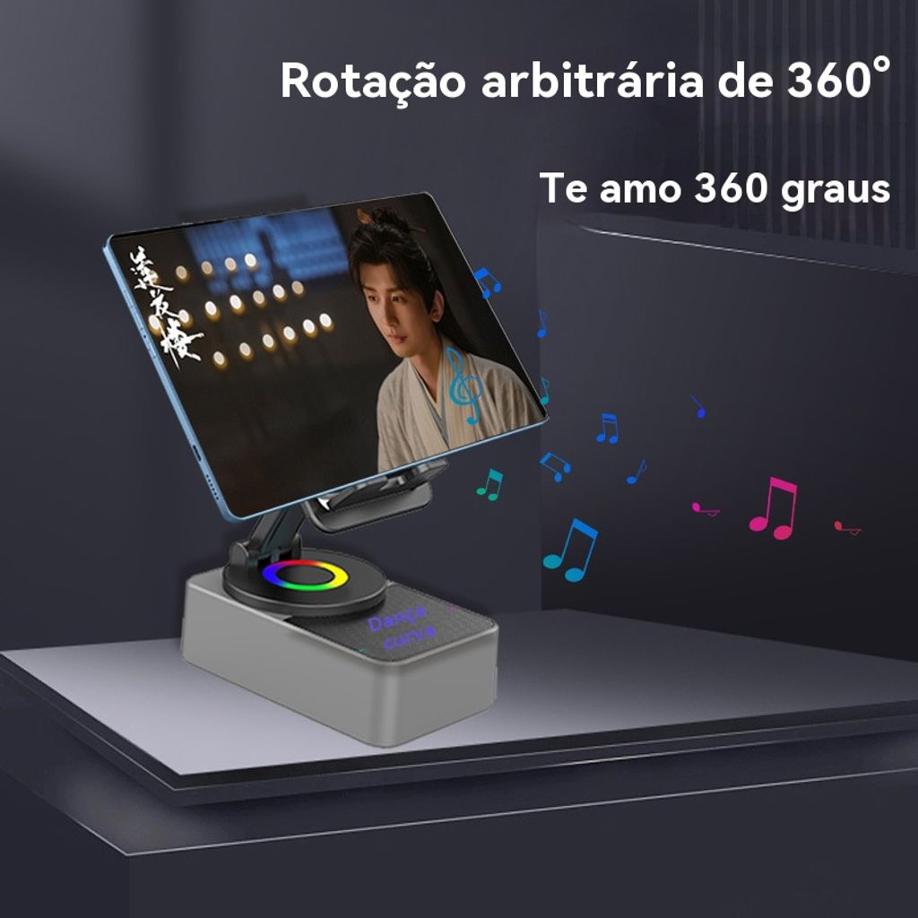 Rotaciona 360° livremente ↔️, dobra com facilidade 📦 e segura tanto celular quanto tablet sem escorregar 📱💻!Além disso, vem com alto-falante Bluetooth integrado 🎶 — filmes e músicas ganham um toque extra de imersão!Funciona ainda como carregador de emergência 🔋, ideal para sair de casa sem preocupações!Compacto e prático, cabe em qualquer bolsa ✨ — o segredo para mais comodidade no seu routine!